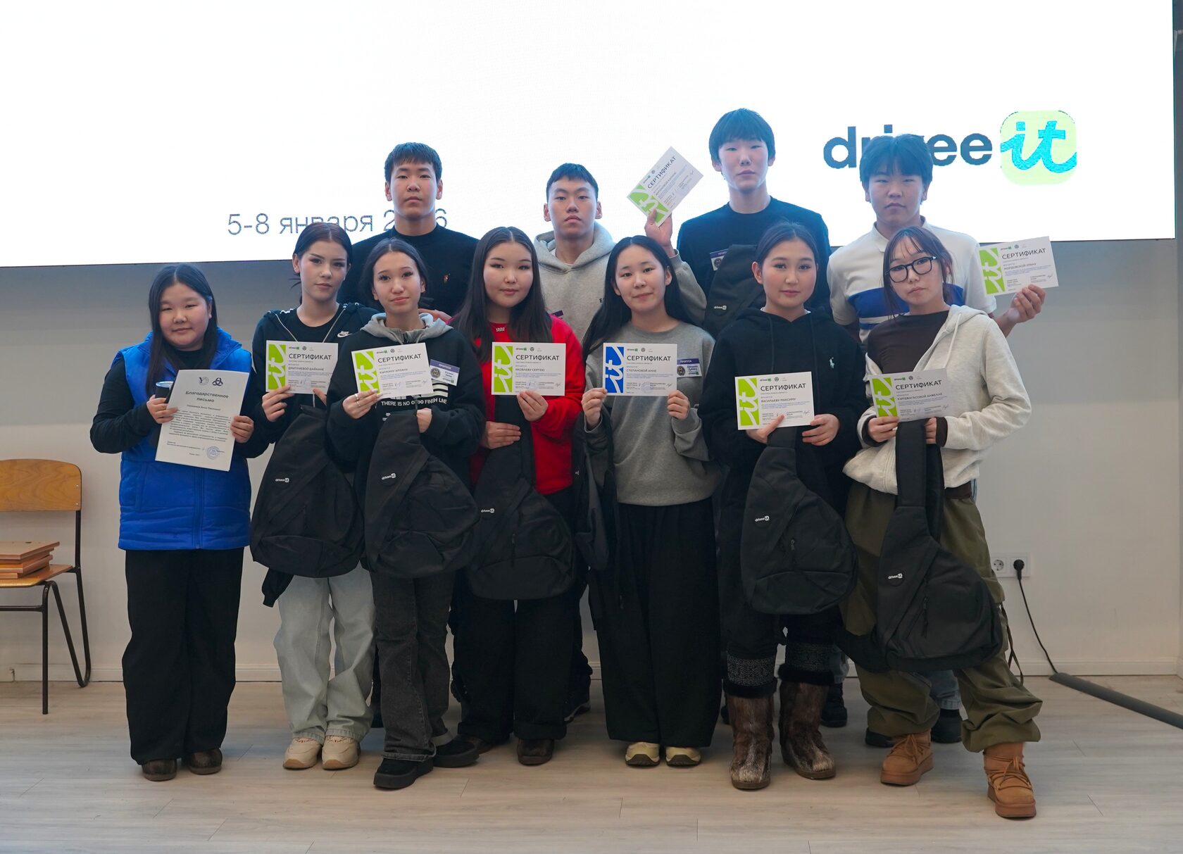 На новогодних каникулах в Якутске собрались более семидесяти школьников 8–11 классов из разных районов республики. Вместе со своими педагогами и наставниками они приехали к нам, чтобы представить проекты, над которыми работали четыре месяца в рамках программы DriveeIT. Для ребят это была финальная точка большого пути от идеи до работающего прототипа. Для учителей — возможность показать, как они выстроили проектную работу и чему смогли научить своих учеников.